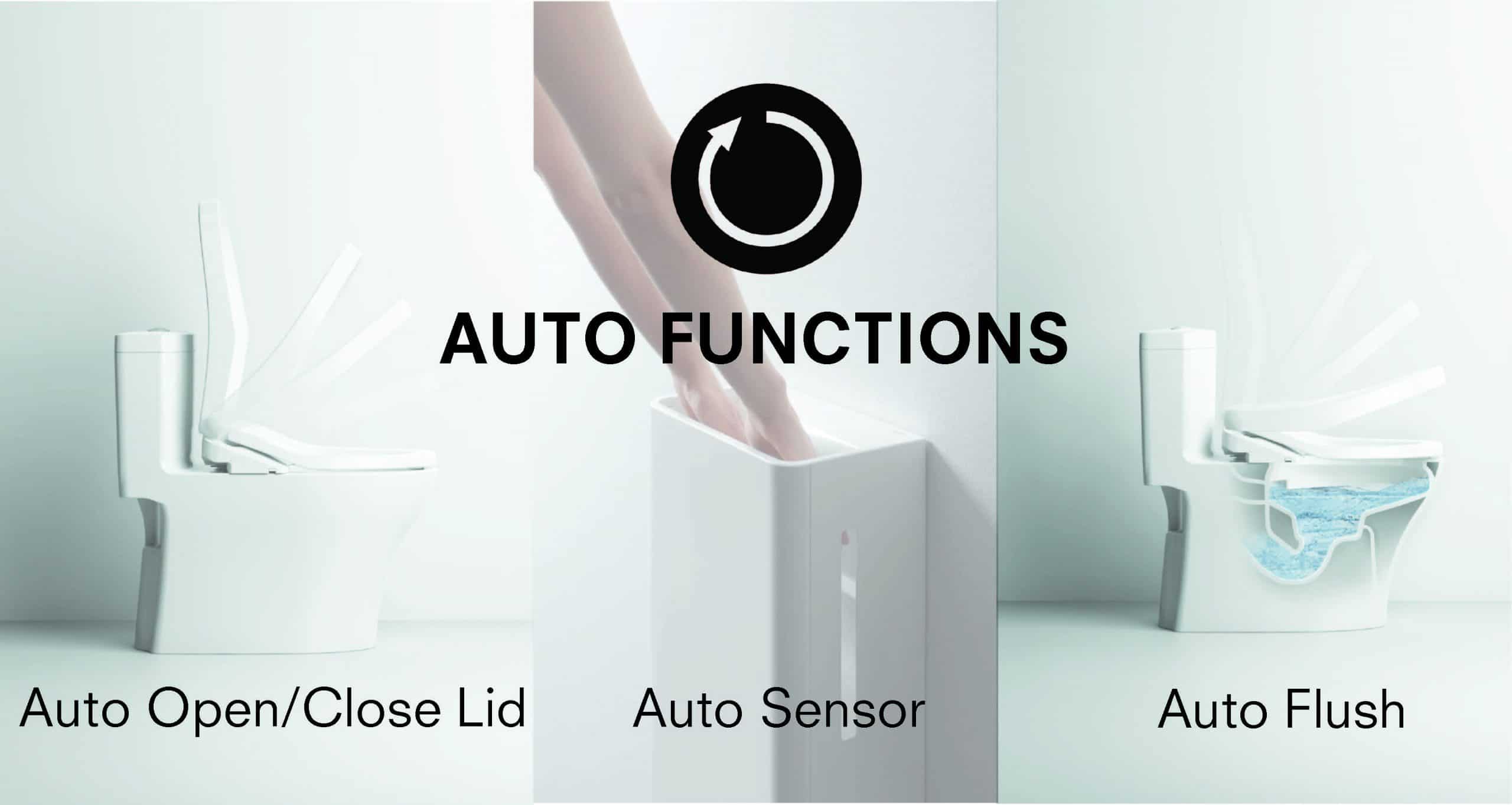 AUTO FUNCTIONS consists of sensor-controlled technologies activated by human movement. These auto functions aim to provide convenience with its ease of use and increase the hygiene level in the bathroom.