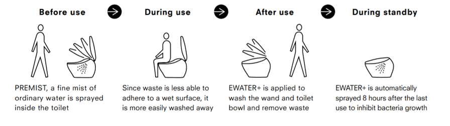 EWATER+ is featured in TOTO’s Neorest series, Washlet and Urinals.