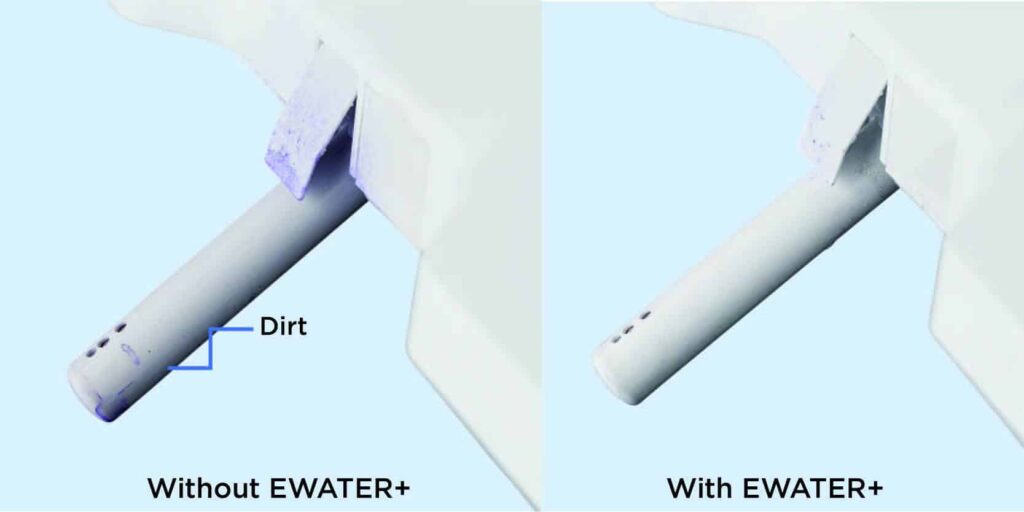 EWATER+ prevents mircroscopic bacteria from accumulating hence, no chemicals or cleaning agents are needed to keep you bathroom fresh and sanitary.