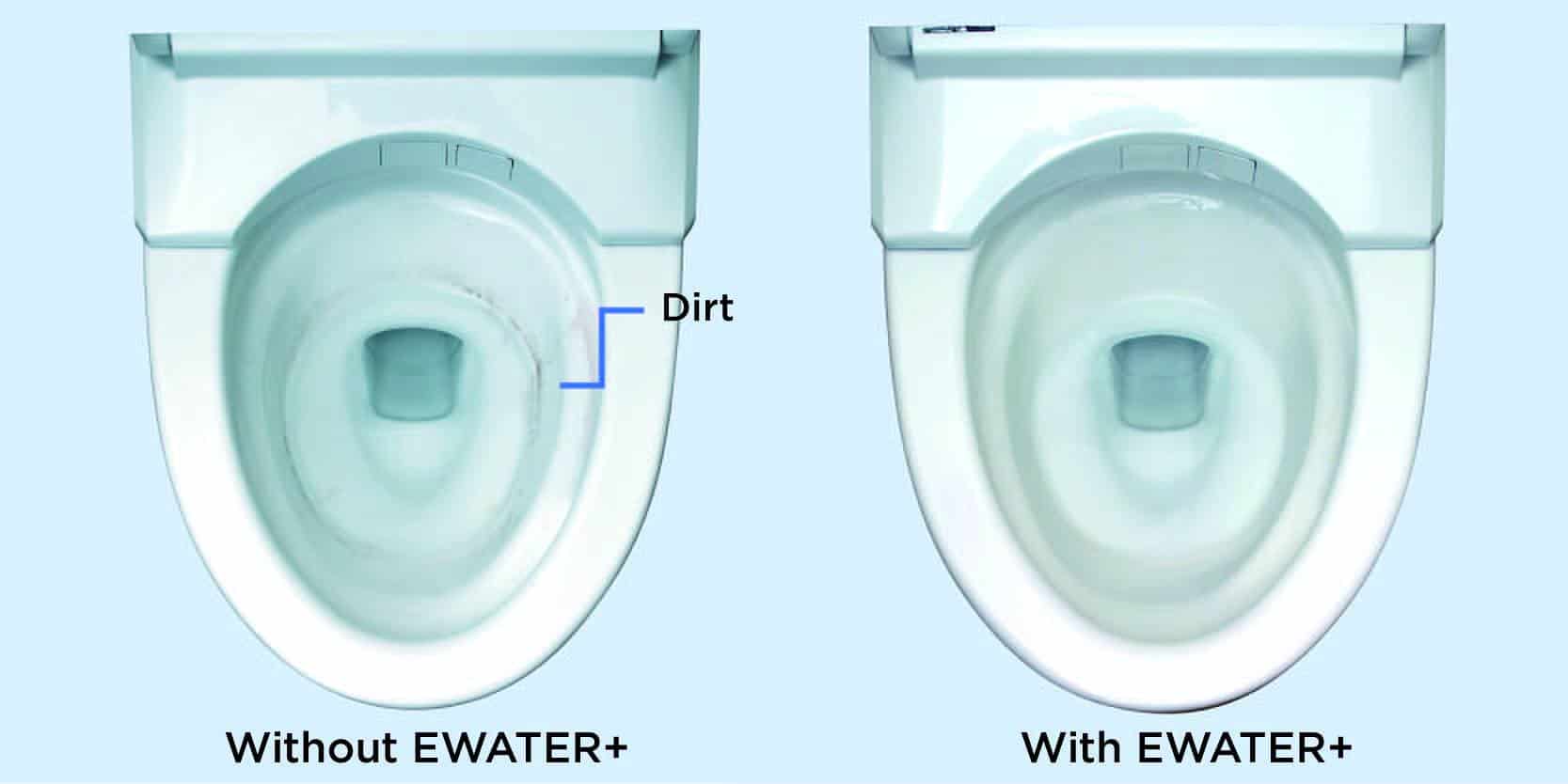 EWATER+ prevents mircroscopic bacteria from accumulating hence, no chemicals or cleaning agents are needed to keep you bathroom fresh and sanitary.