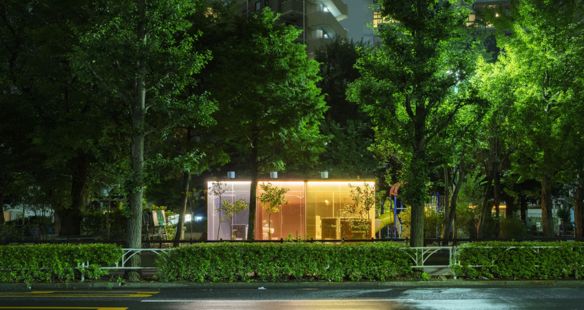 Evening appearance of the ‘Yoyogi Fukamachi Mini Park Toilet’ project